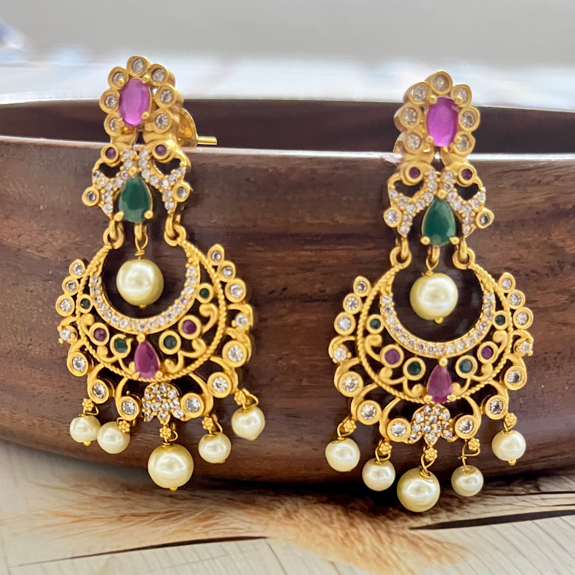 Celebrate your roots and add a divine sparkle with these exquisite Kanaka Taarini Chanbali Earrings — a must-have for every jewelry lover.